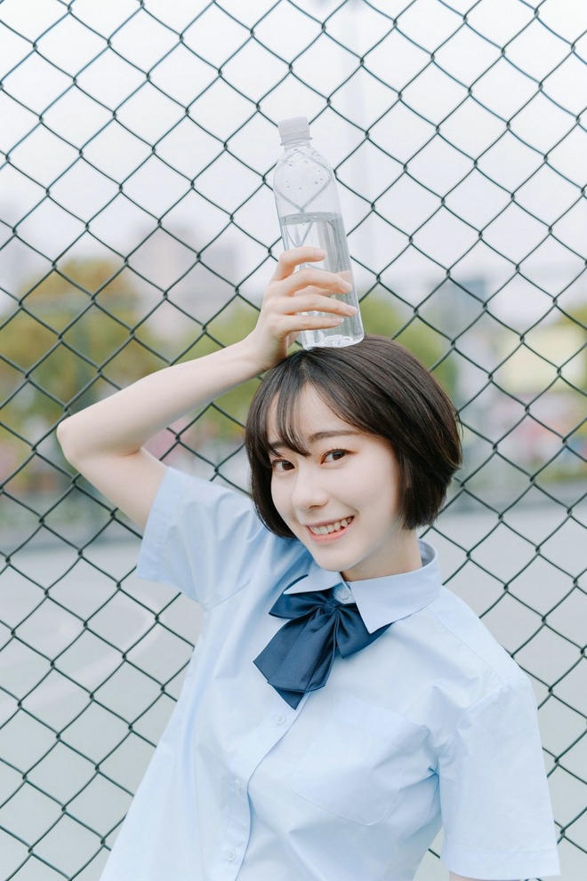清新阳光皮肤白嫩短发清纯学生妹校园甜美俏皮活力唯美写真